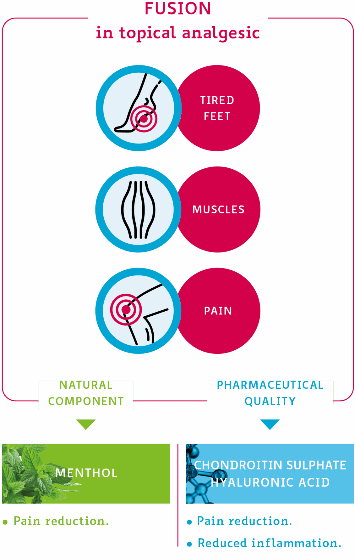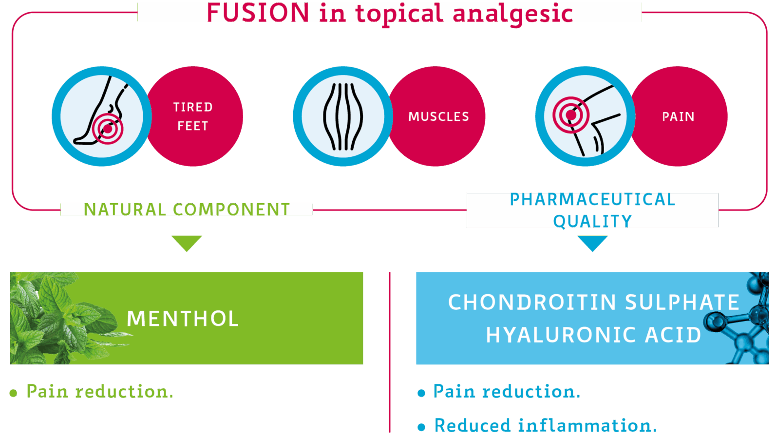 Formulation based on: Chondroitin sulfate, Hyaluronic acid, and Menthol.